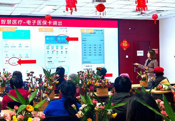 ”爷爷奶奶们看到医疗健康了吗?”我们常用的电子医保卡就正在这里啦!要么怕按错按钮,做为社区首场 “AI 赋能数字帮老” 课,